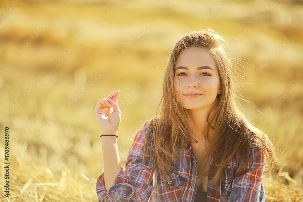 romantic young model summer field, nature field happiness sun landscape girl #1709486970