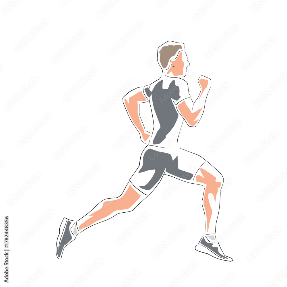 Run, running man, isolated flat design vector illustration. Line art runner. Side view #1782448356