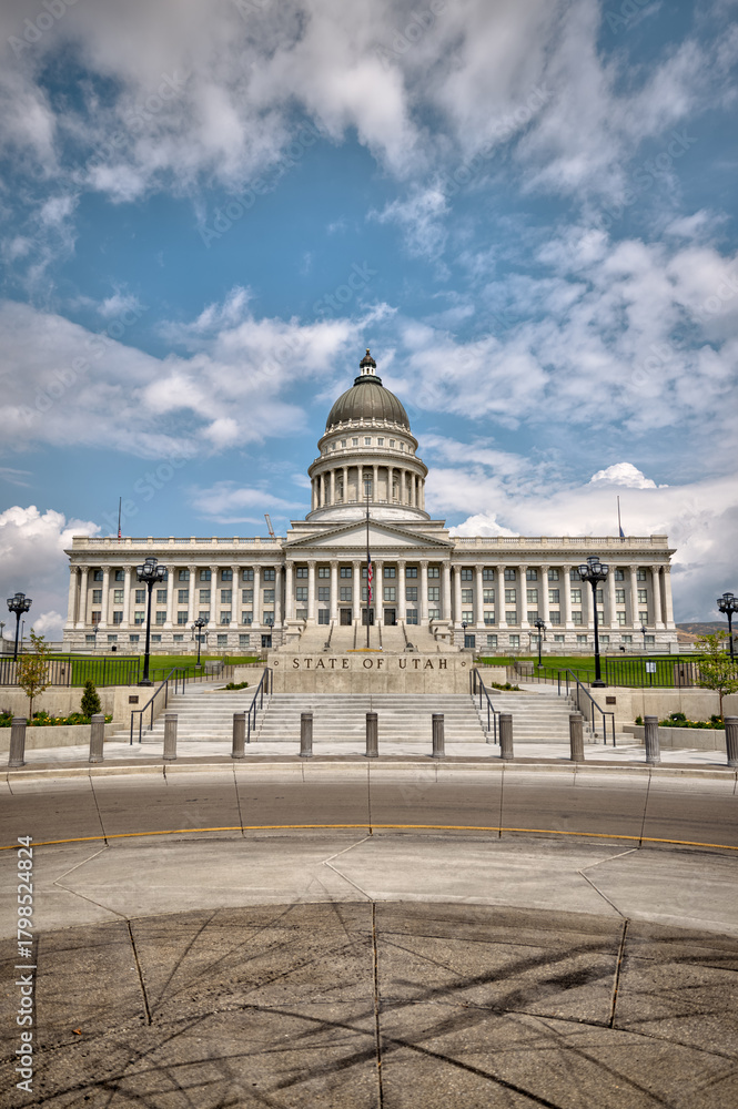 Salt Lake City, Utah, USA – August 27, 2025: Details of the state capitol building and surrounding grounds in Salt Lake City, Utah captured during late summer. #1798524824