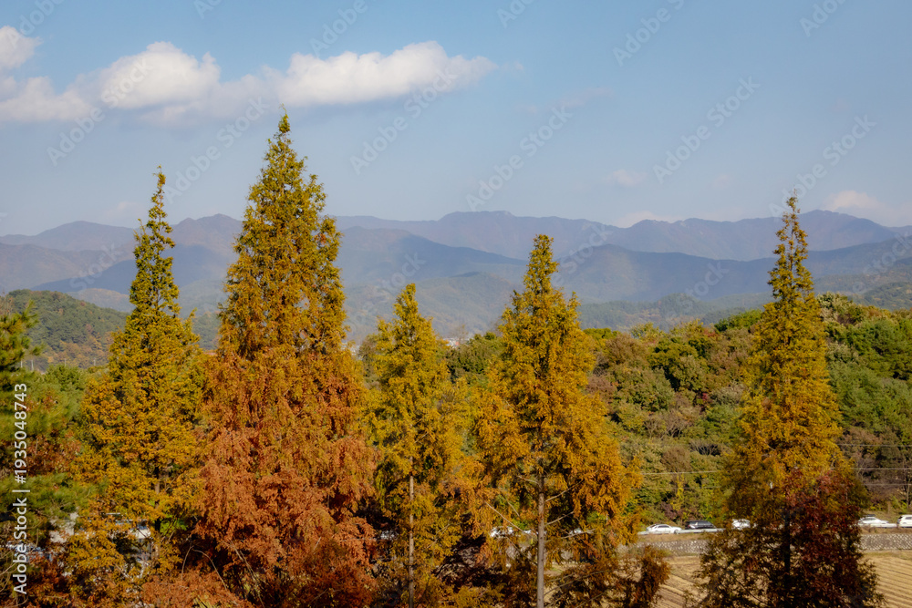 Scenic Autumn trees and fall foliage located in Jinju, South Korea #1935048743