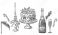 Seamless Christmas border with hand-drawn candles, cocktails, and ornaments. Festive holiday party illustration isolated on white background #1708332267