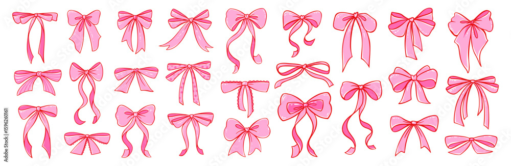Set of pink coquette bows in vector style. Cute bow clipart for fashion, present, romantic cards, girly decor #1596260161