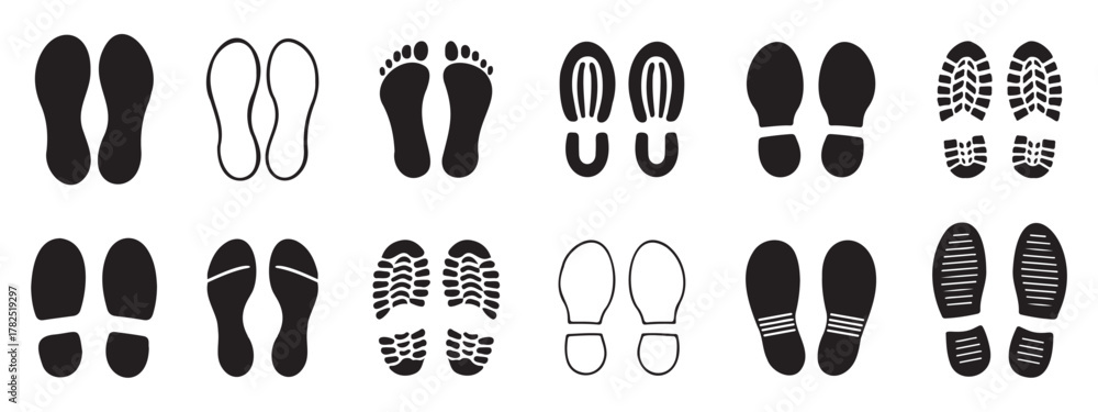 Shoe Print Icon Set in Black Silhouette Vector Design #1782519297