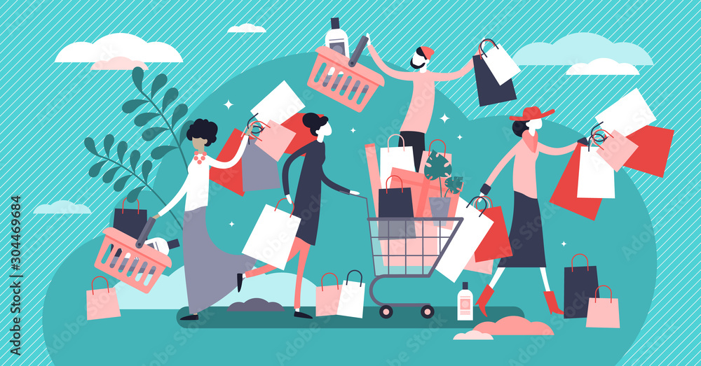 Shopping madness crowd flat tiny persons concept vector illustration #304469684