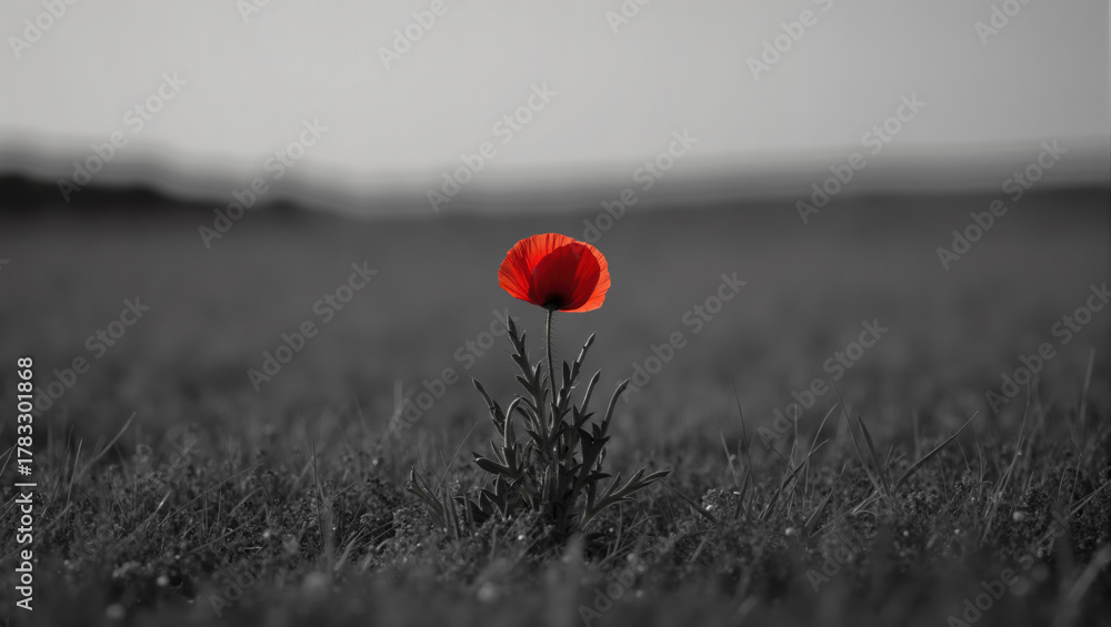 Single Red Poppy in a Black and White Field for Remembrance Day #1783301868