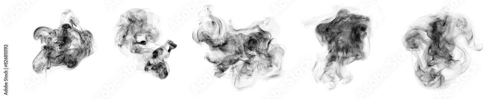 Smoke clouds, steam mist fog and white foggy vapor. 3D realistic smoke from dust particles isolated on black background #826810192