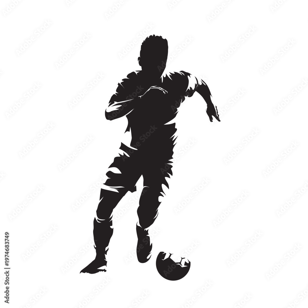 Soccer player running with ball, football, isolated vector silhouette. Front view #1974683749
