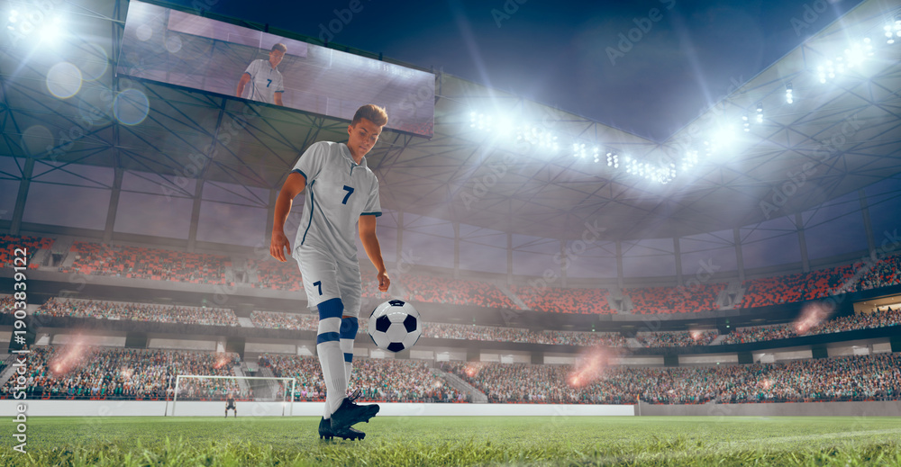Soccer players play football at the stadium. #1903839122