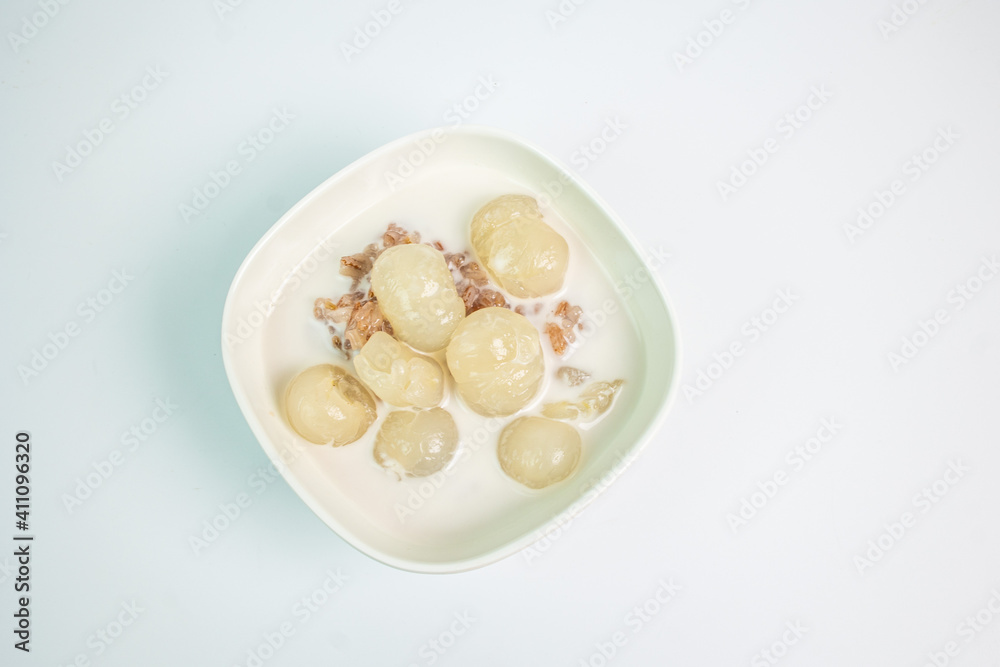 Soft sweet sticky rice with longan and coconut cream #411096320