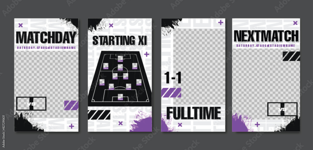 Sport Social Media Post Template , Football Match Day , Starting 11 , Starting Eleven , Full time #827290631