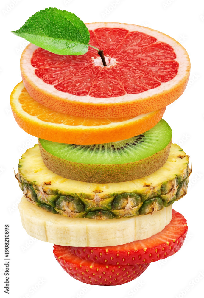 stack of mixed fruit slices isolated on white or transparent background. multivitamin concept #1908210893