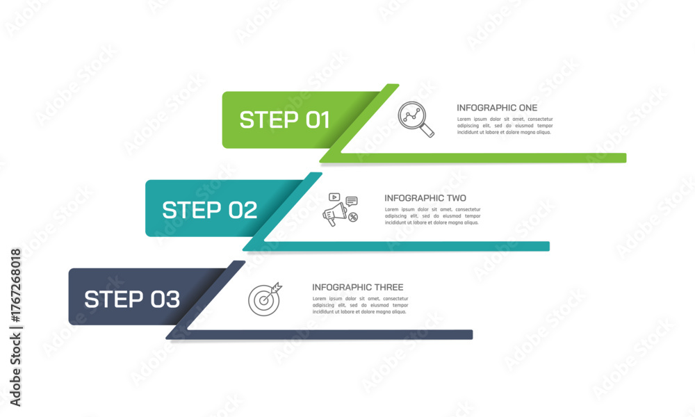 3 Steps Business Process Flowchart Infographic Template Design for Workflow and Strategy Plan. Vector illustration. #1767268018