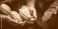 Strong hands proudly display cluster of vibrant ripe cacao pods freshly harvested from farm. #1933991245