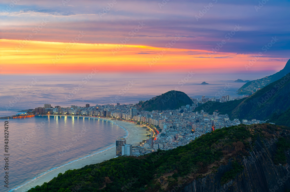Sunset view of Copacabana beach in Rio de Janeiro, Brazil. Aerial cityscape of Rio de Janeiro. #1943027470