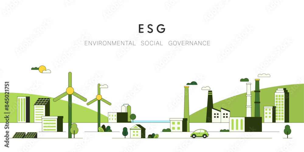 Sustainable of Green ecology and environment concept. ESG as environmental, social and governance concept. Flat Vector illustration. #845021751