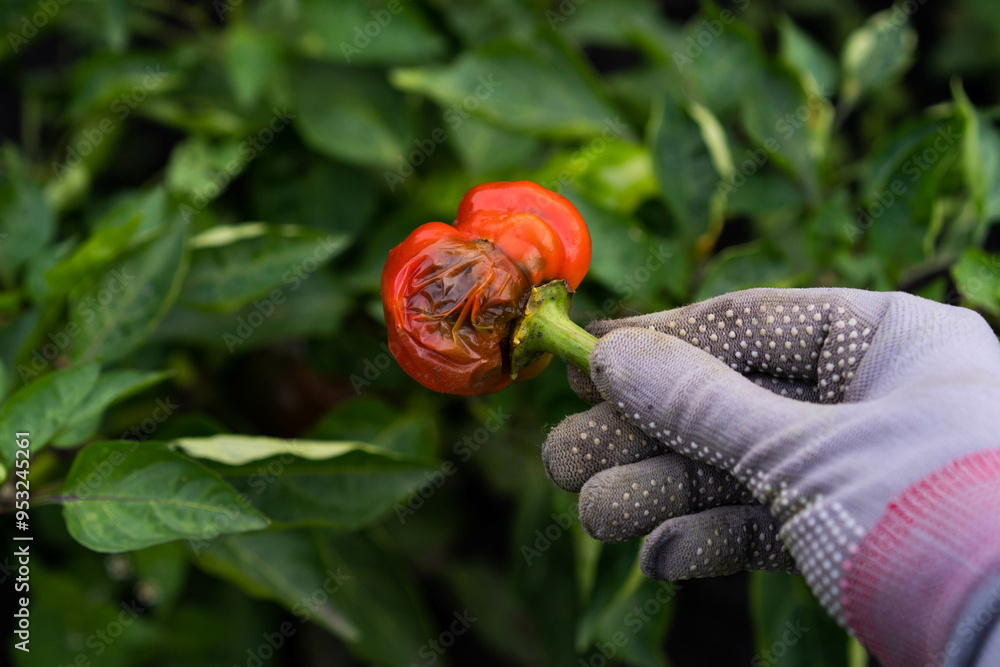 sweet pepper disease, crop rot on the vine, biological pests of vegetables in the garden #953245261