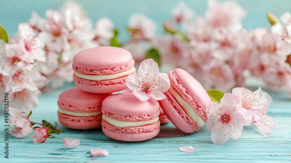 Sweet pink macarons and blooming flowers create a lovely summer feeling. #1932032176