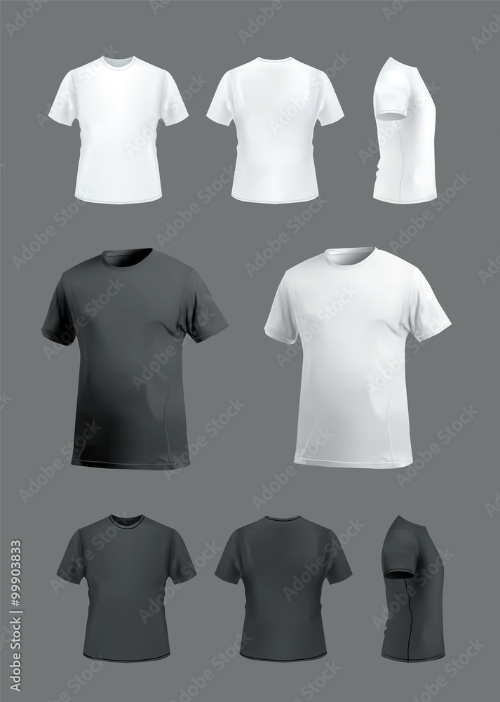 T-shirt mockup set, front, side, back and perspective view. Vector eps10 illustration #99903833