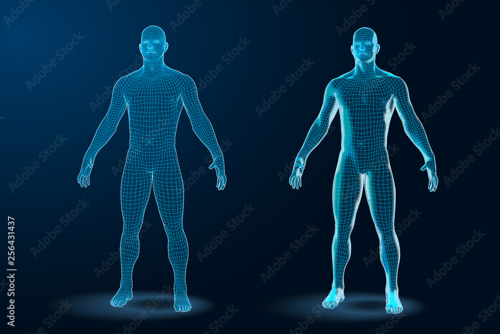 Temlate set of Human Body 3D Polygonal Wireframe Blueprint. Vector Illustration #256431437
