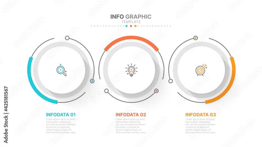 • #425181047 Business infographic template design vector circle shapes, line and marketing icons with 3 step, options. Can be used for workflow diagram, business process step, presentation or web design.