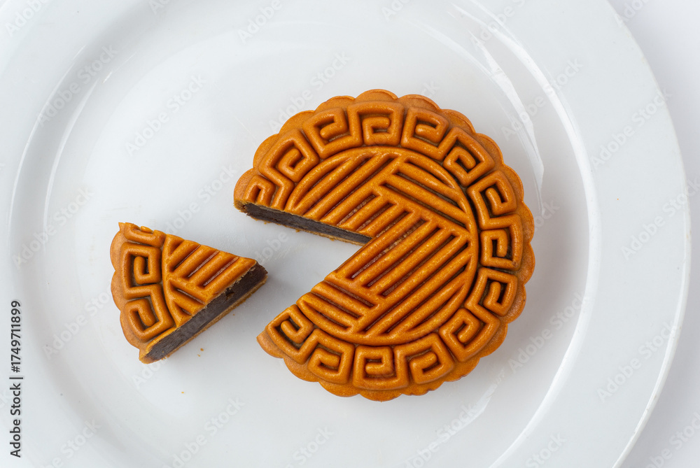 Traditional Chinese Mooncake for Mid-Autumn Festival on white plate #1749711899