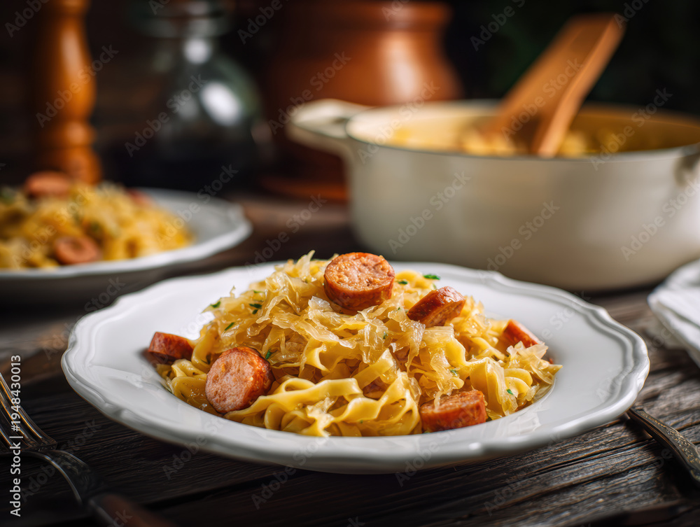 Traditional Polish Łazanki with Sauerkraut and Sausage – Homemade Comfort Dish. AI generative. #1948430013