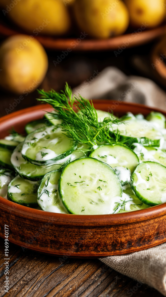 Traditional Polish Mizeria Cucumber Salad with Cream and Dill. AI generative. #1969940177