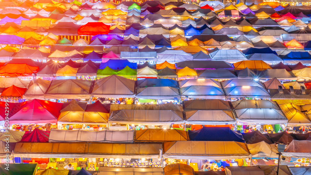 Train night market Ratchada during twilight sky.Famous street market in Bangkok and tourist attraction. #300942999