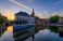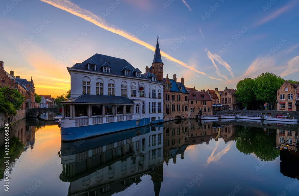 Typical view of the historic city center of Bruges (Brugge), West Flanders province, Belgium. Sunset cityscape of Bruges. #1765616824
