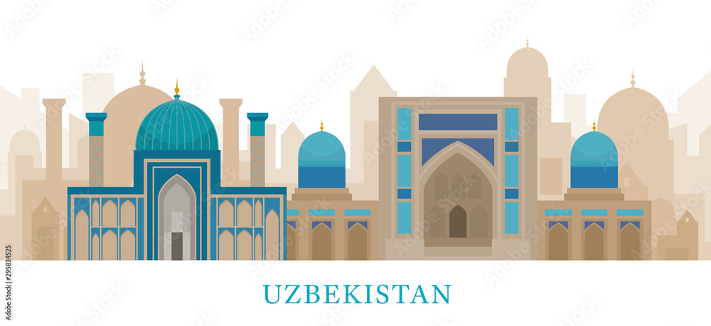 Uzbekistan Skyline Landmarks in Flat Style #295834525
