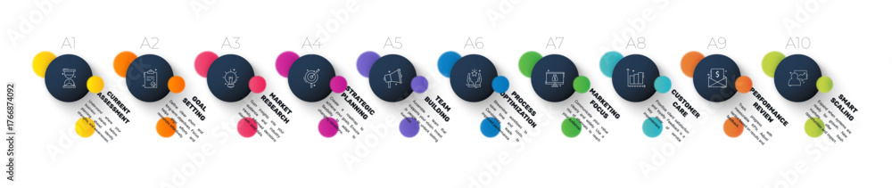 Vector infographic design template. Modern timeline concept with ten steps, circles. Vector illustration used for diagram, workflow layout, banner, webdesign #1766874092
