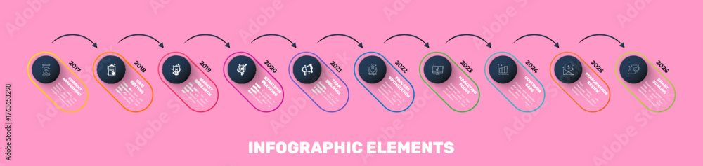 Vector line infographics with ten circles. Business concept graphic process template with 10 steps. Graphic timeline for app, website, interface, chart, levels, web, diagram, banner, presentations #1763653298