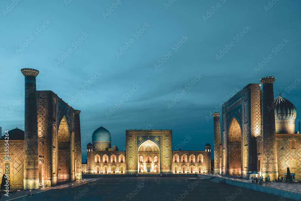 View to Registan Square at Night in Samarkand Uzbekistan #213554264