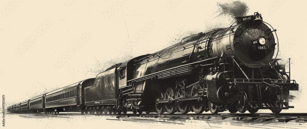 Vintage steam locomotive with a long train #978130471