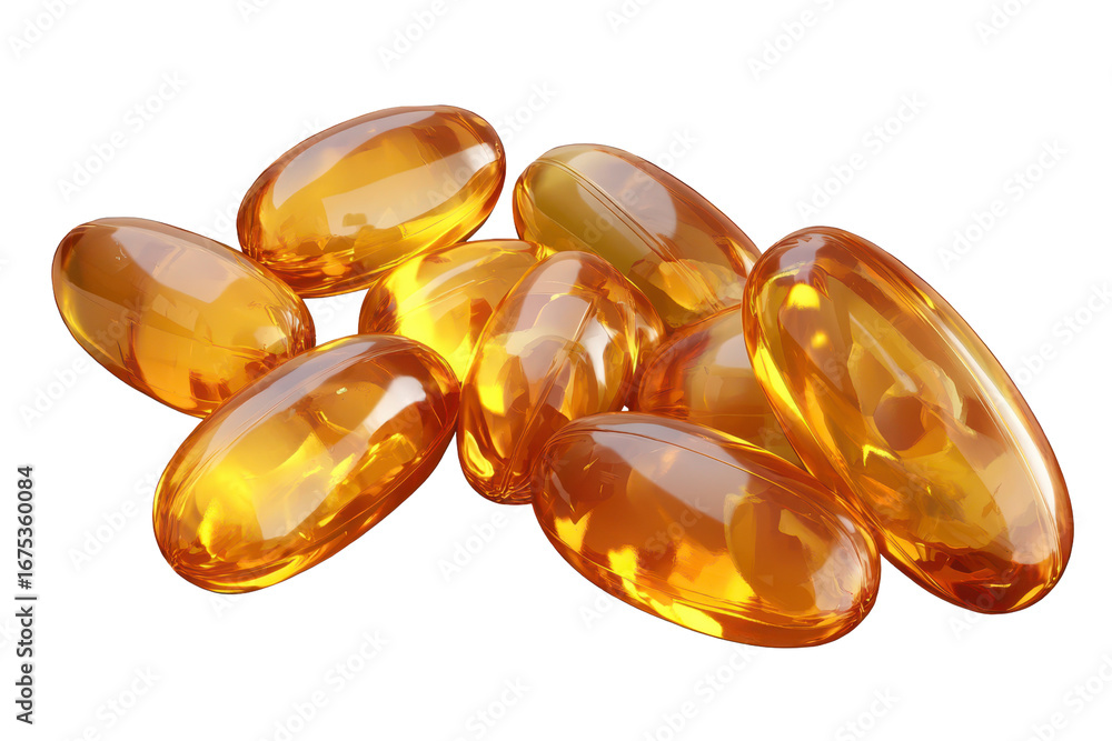 Vitamin pills captured in high resolution on a transparent background showcasing their natural shine and smooth texture #1675360084