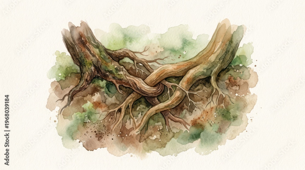 Watercolor Illustration of Tree Roots Watercolor Tree Roots Nature Art Botanical Woodland Organic. Concept featuring watercolor, tree roots, nature, art, botanical for professional commercial design. #1968039184