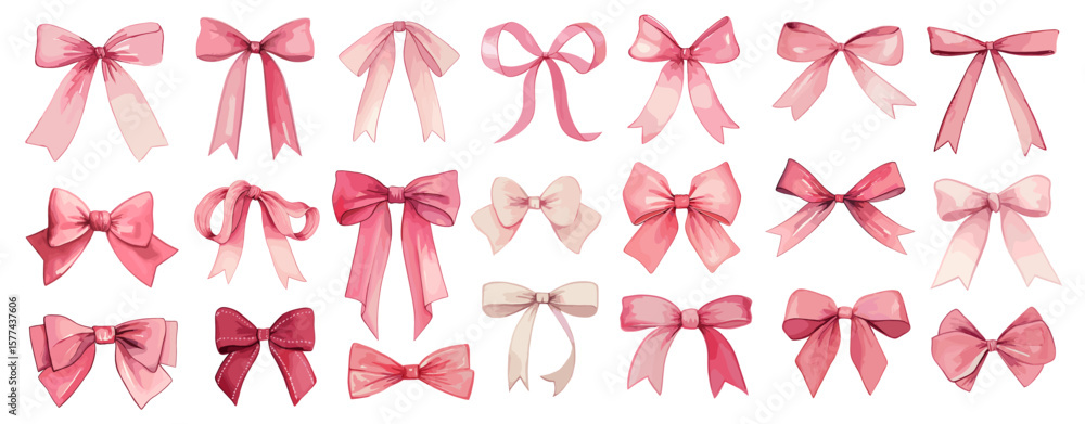 Watercolor pink ribbon bows set. Valentine day, baby shower, birthday, wedding decoration vector design #1577437606