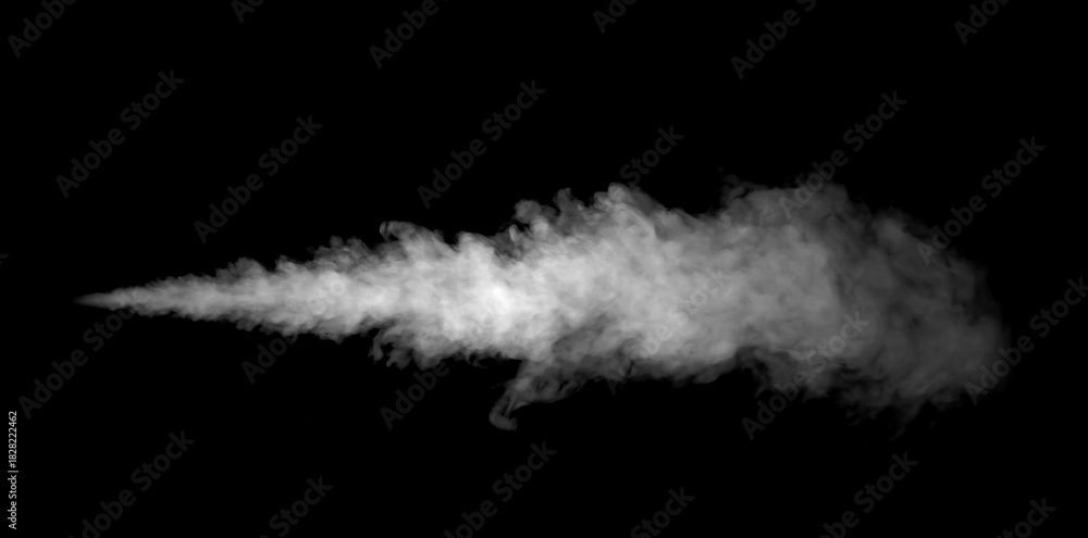White smoke or vapor jet on a black background, creating a realistic and dynamic texture ideal for visual effects, steam design, or digital backgrounds in creative projects. #1828222462