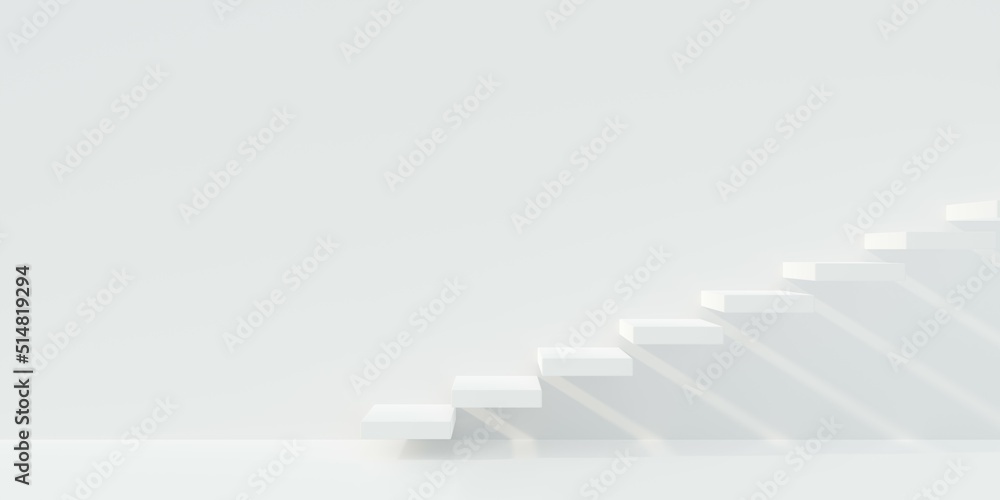White stairs or steps going up on white wall background, business achievement or career goal concept #514819294