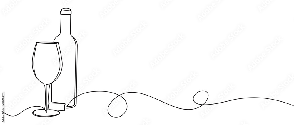 wine bottle and glass line art style illustration vector eps 10 #639736413