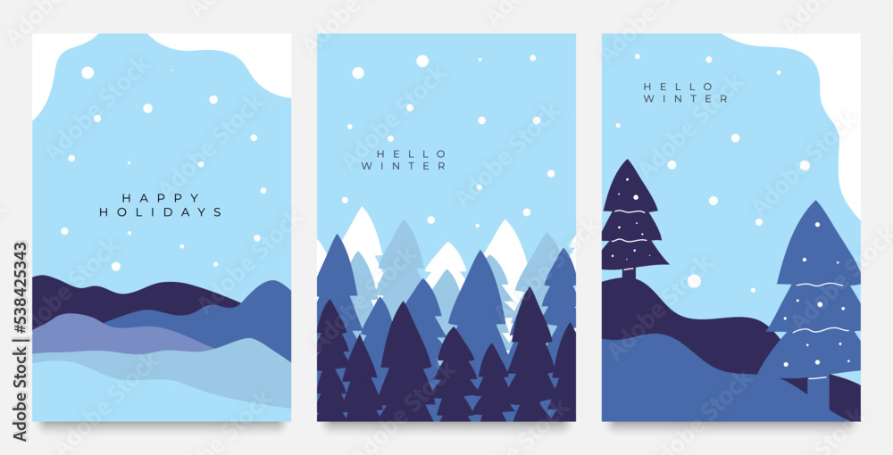 winter snow season pine tree blue Holiday invitation background template card design wallpaper #538425343