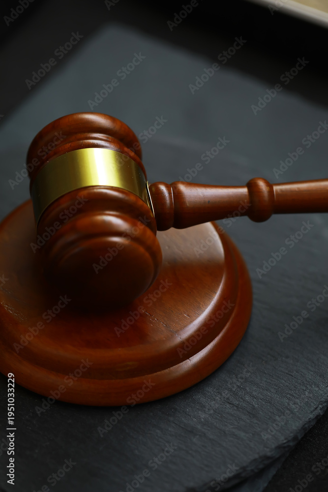 Wooden Gavel on Slate Surface Representing Justice and Legal Proceedings #1951033229