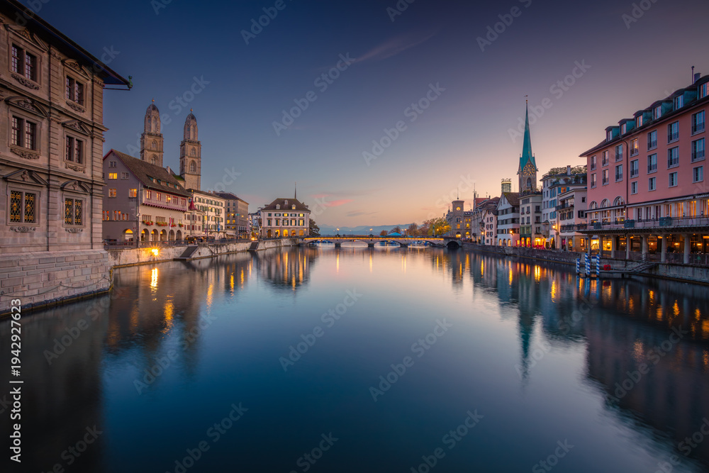 Zurich, Switzerland. Cityscape image of Zurich, Switzerland at twilight blue hour. #1942927623