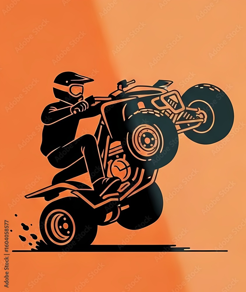 a black crazy quad rider doing a wheelie. flat, vector, minimalist, extreme sport, quad, quad bike, atv, illustration, stunt rider, off-road, motorsport, adrenaline, vector artwork, vehicle stunt #1604058577