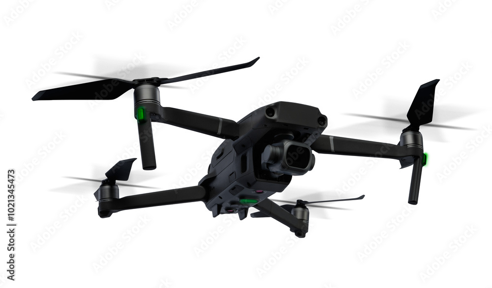 A black flying drone isolated on transparent background. Bottom view. #1021345473