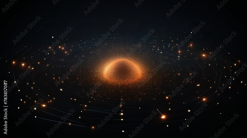 A black hole looms in the night sky, surrounded by glowing lights. Generative AI #783817087