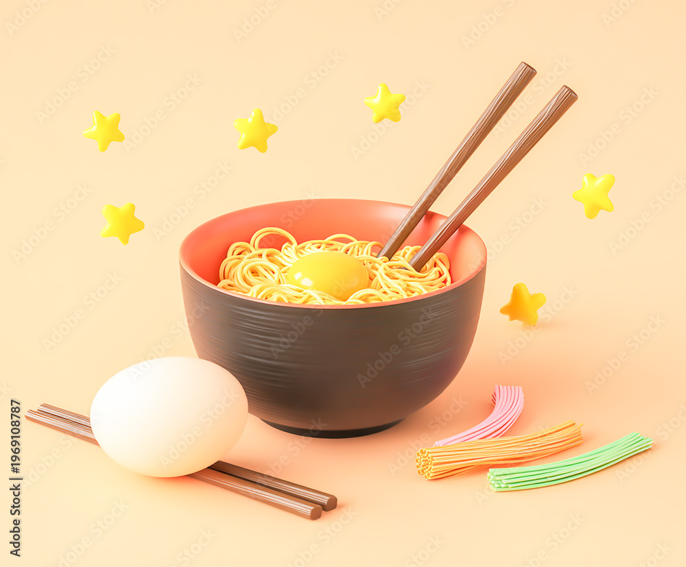A bowl of ramen with chopsticks and star decorations, creating a whimsical and appetizing food presentation #1969108787