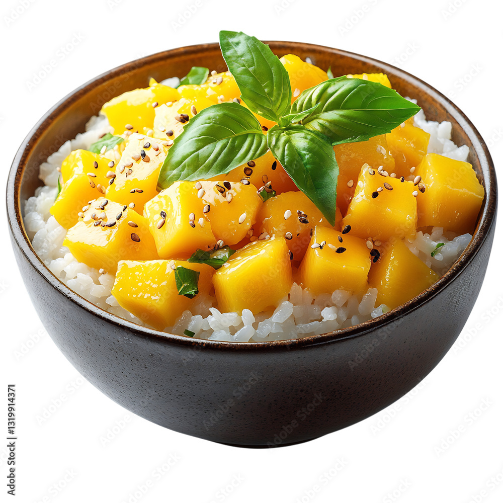 A Bowl of Thai Mango Sticky Rice Sweet Sticky Rice Isolated on Transparent Background #1319914371