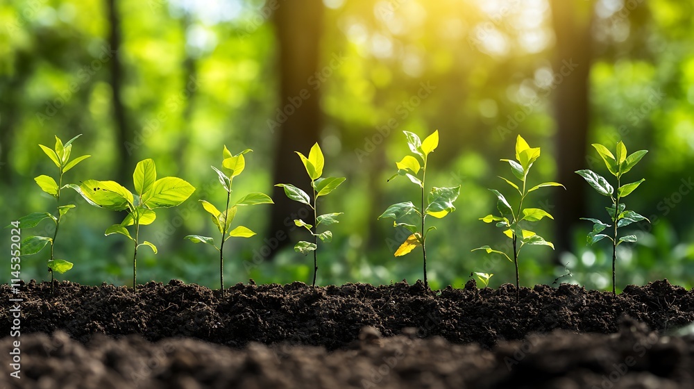 A broad scene showcasing reforestation where dedicated planting efforts restore once barren lands into lush stands of greenery alive with emerging life #1145352024