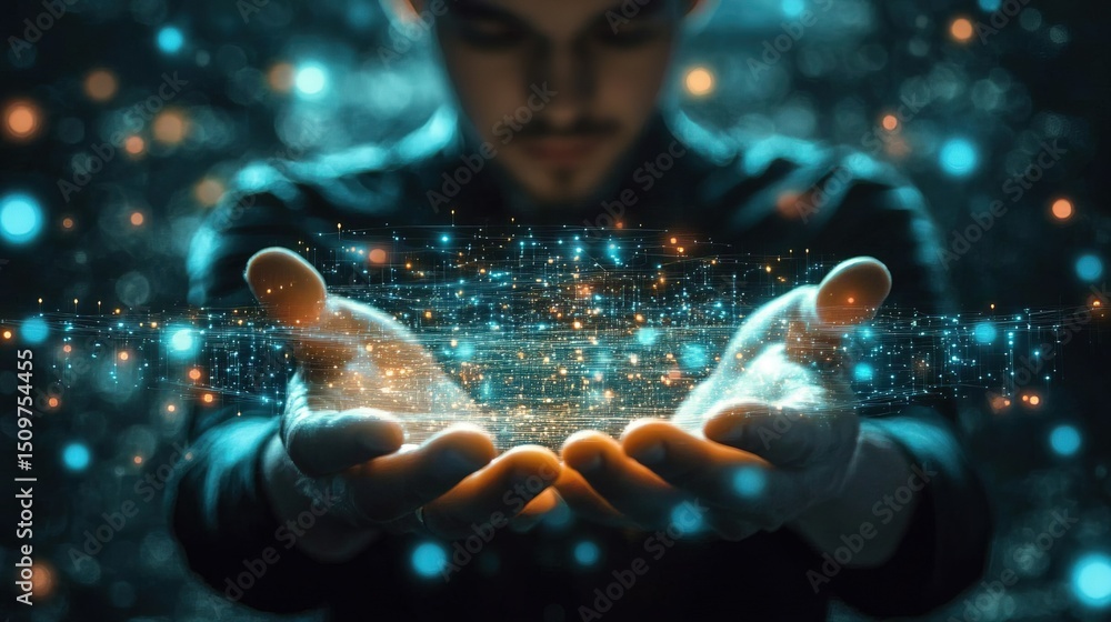 A business angel investing in a promising startup project, money flowing in holograms #1509754455
